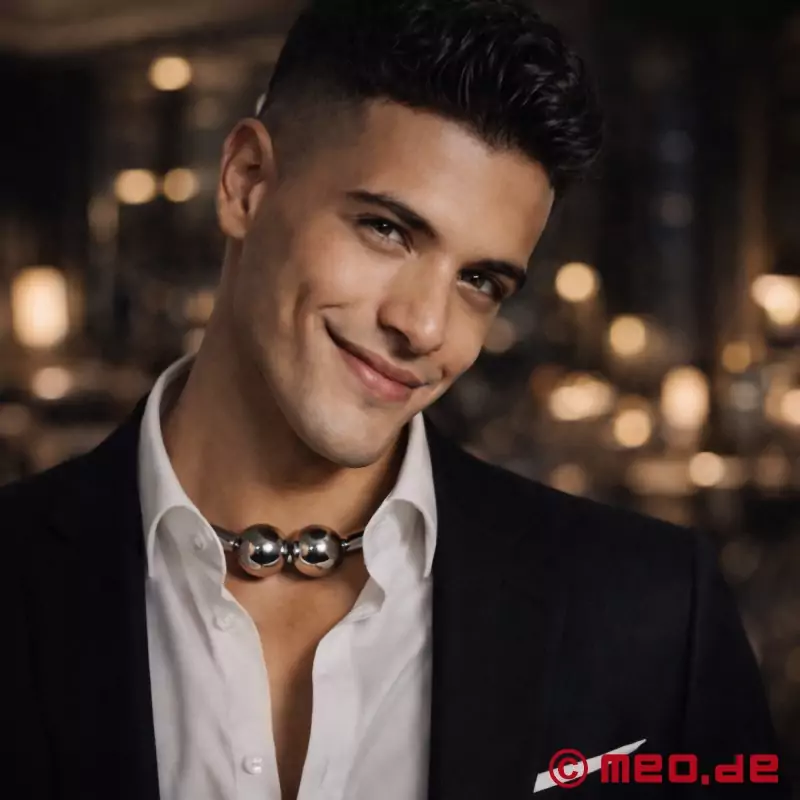 Welded in lust, locked in style - MEO Germany's Euphoria Collar makes a bold and beautiful BDSM statement. Forged from heavy, polished stainless steel, this barbell-style collar snaps shut with two powerful magnetic spheres, creating the illusion of permanent bondage. The hidden hinge and seamless clasp invite whispered questions: Can it ever be removed? Whether worn at a fetish party or in the privacy of your dungeon, the Euphoria Collar radiates elegance, dominance, and pure submissive energy. This is more than jewellery - this is ownership.