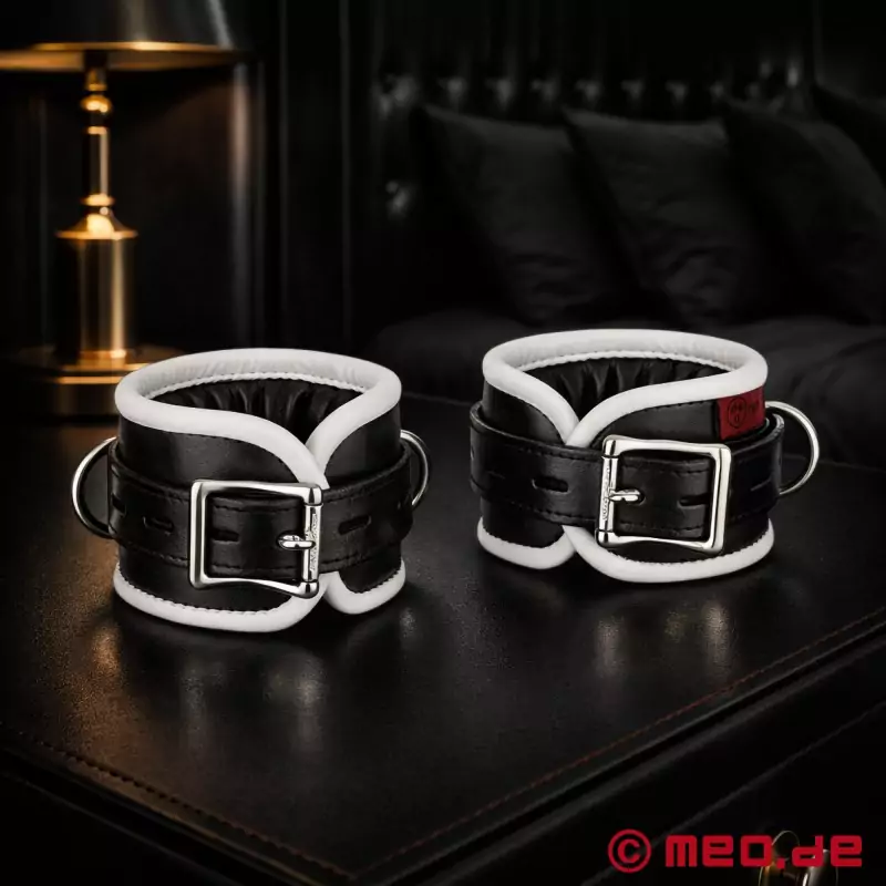 Pentru cătușele de gleznă din colecția Amsterdam de la MEO ® se folosește numai piele care îndeplinește standardele noastre înalte de calitate. Cătușele noastre de gleznă sunt realizate de șelari experimentați, care au mulți ani de experiență meșteșugărească. Cătușele de gleznă sunt realizate cu cea mai mare atenție - de la tăiere și cusături până la finisarea perfectă. Fiecare nit și cataramă este, de asemenea, embosată cu logo-ul original MEO ®, un semn distinctiv al celei mai înalte calități pentru produsele de bondage. Cătușele de gleznă bondage din piele sunt livrate într-o pungă elegantă de depozitare cu marca MEO ®.