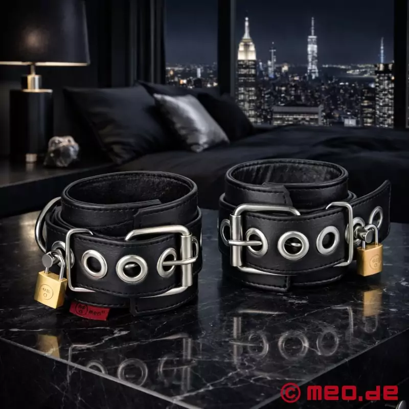 Colecția "New York" de la MEO® nu include numai aceste cătușe pentru mâini de înaltă calitate, ci și cătușe de gleznă asortate, care împreună formează un set complet pentru iubitorii de BDSM.
