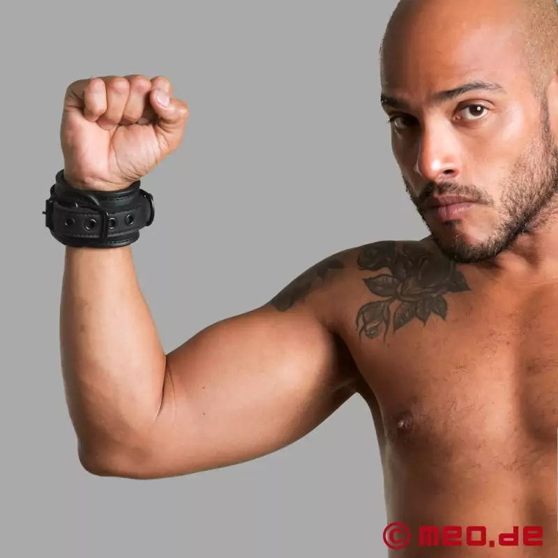 One last thing: The description of the item mentions that you can use the locking system Meo sells with these. Since I looooove locking stuff, I had to try it. In my experience, this will never work. The metal pegs that are used in the locking system (which I own for use with the large leather straps and it works great with them) are too large for the holes and grommets used on those cuffs. I believe this mention should be removed from the description, unless I misunderstood something.
