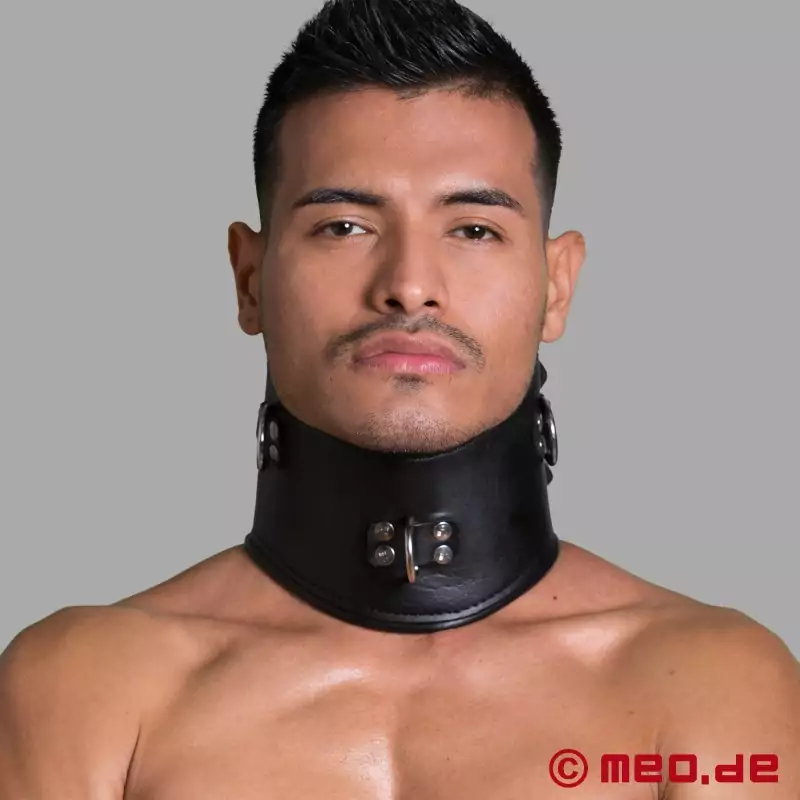 Corsetul din piele pentru gât, așa-numitul BDSM Posture Collar din piele, asigură fixarea extremă a capului și dă fiecărei sesiuni de bondage lovitura finală. Linii de ghidare, frânghii și alte echipamente de bondage pot fi atașate la inelele D din față și din lateral. Două catarame largi sunt încorporate la spate pentru a se asigura că corsetul pentru gât se fixează bine.