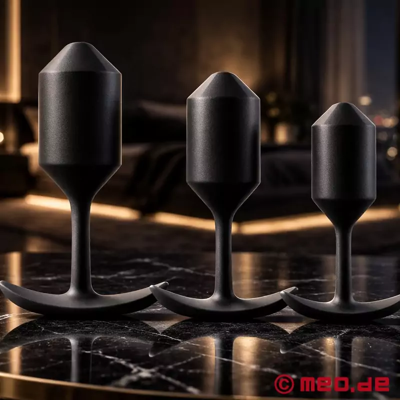 Chiar și începătorii se pot bucura de senzațiile intense ale Heavy Hitters™, deoarece aceste butt plugs sunt disponibile în trei dimensiuni diferite - întotdeauna perfect conturate pentru a fi potrivite și pentru începători. Capul conic facilitează introducerea, în timp ce podul subțire vă permite să purtați dopul anal pentru perioade mai lungi de timp, adică 24/7.