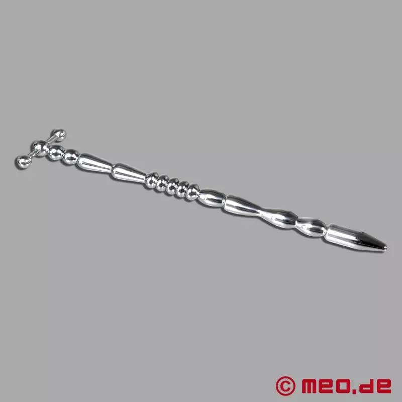 Adâncime maximă, ghidare precisă și stimulare vizibil variată pe întreaga lungime - ControlLoss™ este un penis plug lung din oțel inoxidabil foarte lustruit pentru o stimulare deosebit de intensă (cunoscută și sub numele de "sounding"). Penis plugul de la MEO® impresionează prin designul său special: alternanța de bile, valuri și zone netede asigură o stimulare direcționată, în timp ce mânerul în formă de T asigură o prindere sigură și un control precis asupra adâncimii și unghiului de stimulare.