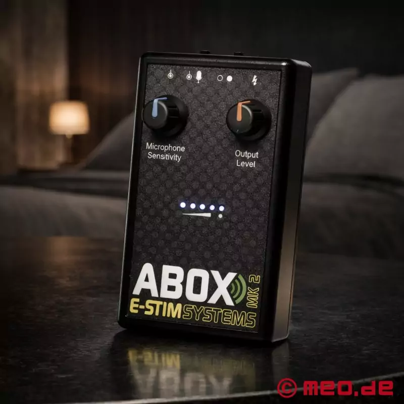 ABox Mk2 este un dispozitiv unic de electrostimulare conceput special pentru electrostimulare erotică, declanșată audio. ABox MK2 de la E-Stim Systems nu este doar declanșat de sunet, ci și controlat de sunet. Semnalul de intrare, fie de la microfonul încorporat sau de la o sursă audio conectată, cum ar fi un MP3 player, este convertit într-un semnal de electrostimulare puternic, dar controlabil. Aceasta înseamnă că electrostimularea erotică poate fi controlată exclusiv de volumul și sunetul vocii sau al sursei audio.