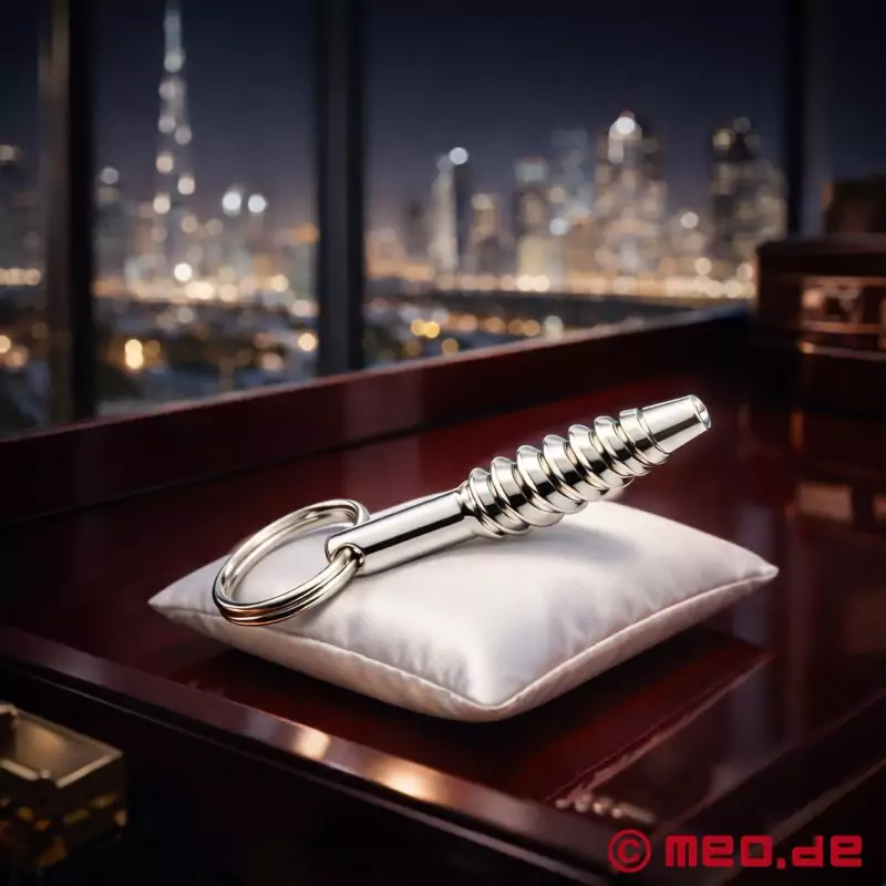 Bijuterii intime cu o diferență: Penis plug pentru înșurubare, care se așează extrem de sigur și ferm datorită designului său unic. Cu un filet rotund de 3 mm și un diametru maxim de 9,5 mm, precum și o lungime totală de 50 mm. "Cock Screw" are o gaură de trecere și un inel de ghidare.