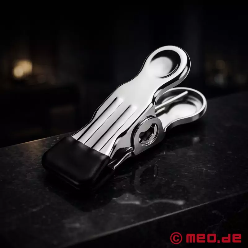 Vă puteți lăsa imaginația să zburde cu această clemă foarte urâtă! Această clemă puternică poate fi folosită pe multe zone sensibile ale corpului. Clema universală de la Dr Sado este o clemă BDSM deosebit de eficientă, fabricată în Germania, care nu este distractivă doar pe sfârcuri!
