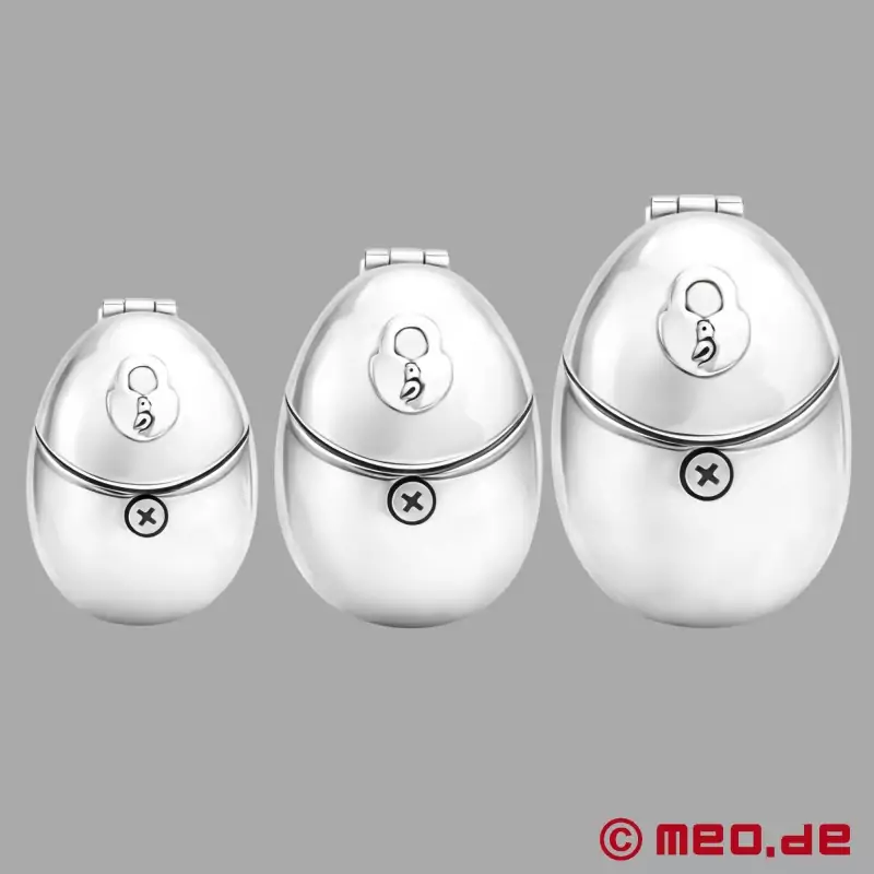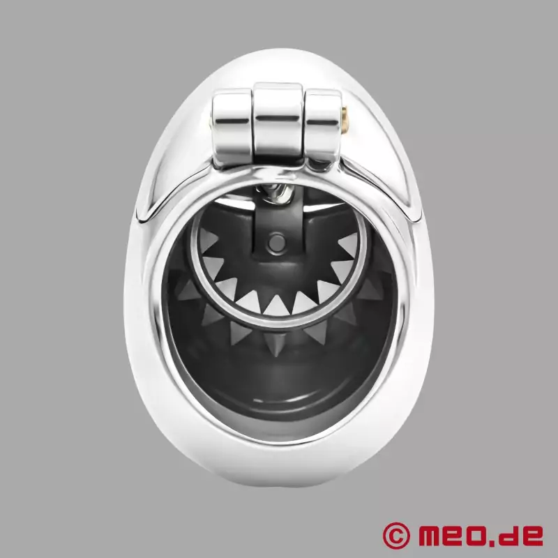 By adjusting the underside of the shaft going through the spiked ring, you can make a tight cage keep your package perfectly comfortable, but not erect. You can fiddle around with the tip of the penis and bend it down, and the penis and balls share the space in the egg. Half of the spikes face your shaft, the other half, your nuts. The barbs are not sharp, but they are STEEL and POINTY. If you adjust the bottom of your penis more into the barbed ring, or more forward relative to you vs. the top half of the penis. This allows pain to be perceived. If you let the shaft going through it, but 1/2 limp, you don't want to pull the bottom of the shaft into the ring so far. I closed the whole affair and found it completely comfortable, with no pain at all. This is because the penis was bent down, kind of through the ring and down. With a larger model, I am wondering what the possibilities would be. In any case, mine can be respectably painful if you have the shaft semi hard to start out with, and the bottom of your shaft deeper on the ring (it stretches that area of the penis over the barbs, which makes it more painful, if you want that.