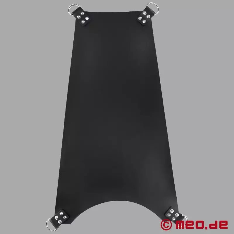 Acest covoraș de sling clasic este unul dintre cele mai populare slinguri fisting ale noastre. Rivetat de mai multe ori cu nituri din oțel inoxidabil și finisat excelent pentru a vă garanta siguranța de care aveți nevoie în timpul sexului în sling. Cu 4 puncte de fixare, covorașul de sling de înaltă calitate este fabricat din cea mai bună piele și are 4 inele D robuste pentru agățat sub tavan sau în cadrul nostru mobil de sling.